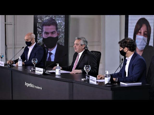 La prórroga del aislamiento se anunció a través de un mensaje en vivo de casi dos horas de duración, el más largo que encabezó el jefe de Estado desde aquel en la noche del 19 de marzo cuando anunció que el país entraba en cuarentena. La novedad: además del jefe de Gobierno y del gobernador bonaerense, brindaron el estado de situación de sus distritos los gobernadores de Jujuy, Gerardo Morales, Río Negro, Arabela Carreras y Chaco, Jorge Capitanich.