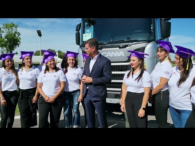 Para dar comienzo al evento, el CEO de Scania Argentina, Andrés Leonard, afirmó: “Cuando arrancamos con este sueño no me hubiese imaginado momentos como los que estamos viviendo. Son 12 nuevas egresadas de más de 1500 mujeres que soñaron con ser conductoras profesionales de camión”.