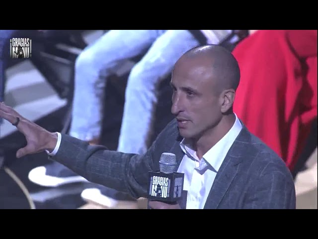 Once halftime hit, seven of Ginobili's former teammates from the Argentina National Team's "Golden Generation" took part in a roundtable discussion that included interpreters and subtitles on the scoreboard. Those former Ginobili teammates included Gabriel Fernandez, Alejandro Montecchia, Andres Nocioni, Pablo Prigioni, Luis Scola, Pepe Sanchez and Oberto.