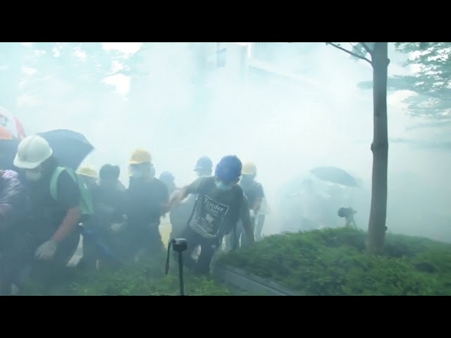 Scuffles broke out between demonstrators and police in Hong Kong on Thursday as hundreds of people persevered with a protest against an extradition law with mainland China, a day after police fired tear gas and rubber bullets to break up big crowds.