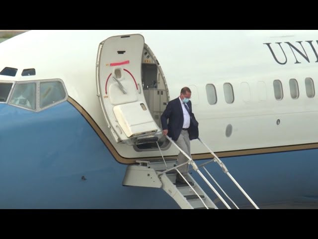 United States Secretary of Health and Human Services (HHS) Alex Azar and his delegation arrived at Taipei Songshan Airport around 4:48 p.m. on a U.S. Air Force C-40B aircraft.